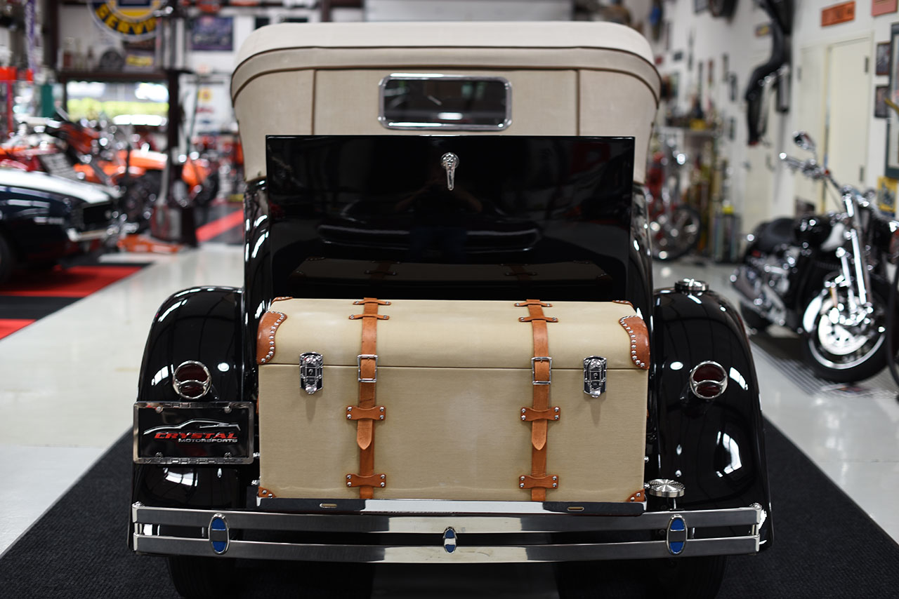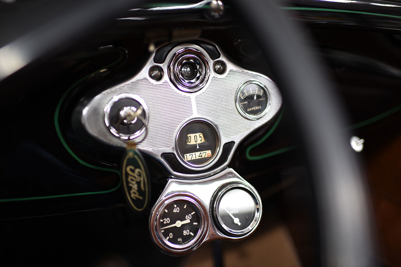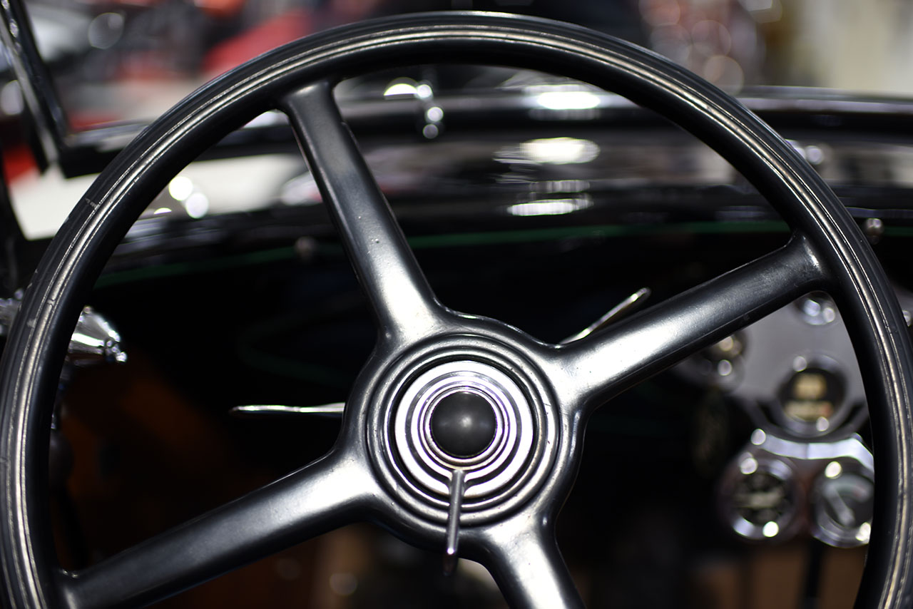 Step inside, and the beautiful details continue with cream-colored upholstery enveloping the cabin, including a comfortable bench seat that offers a timeless look. The dash and center cover have been painted for a refined finish. This ’32 Ford also comes equipped with a stereo system featuring FM radio, Bluetooth connectivity, and Sony speakers.