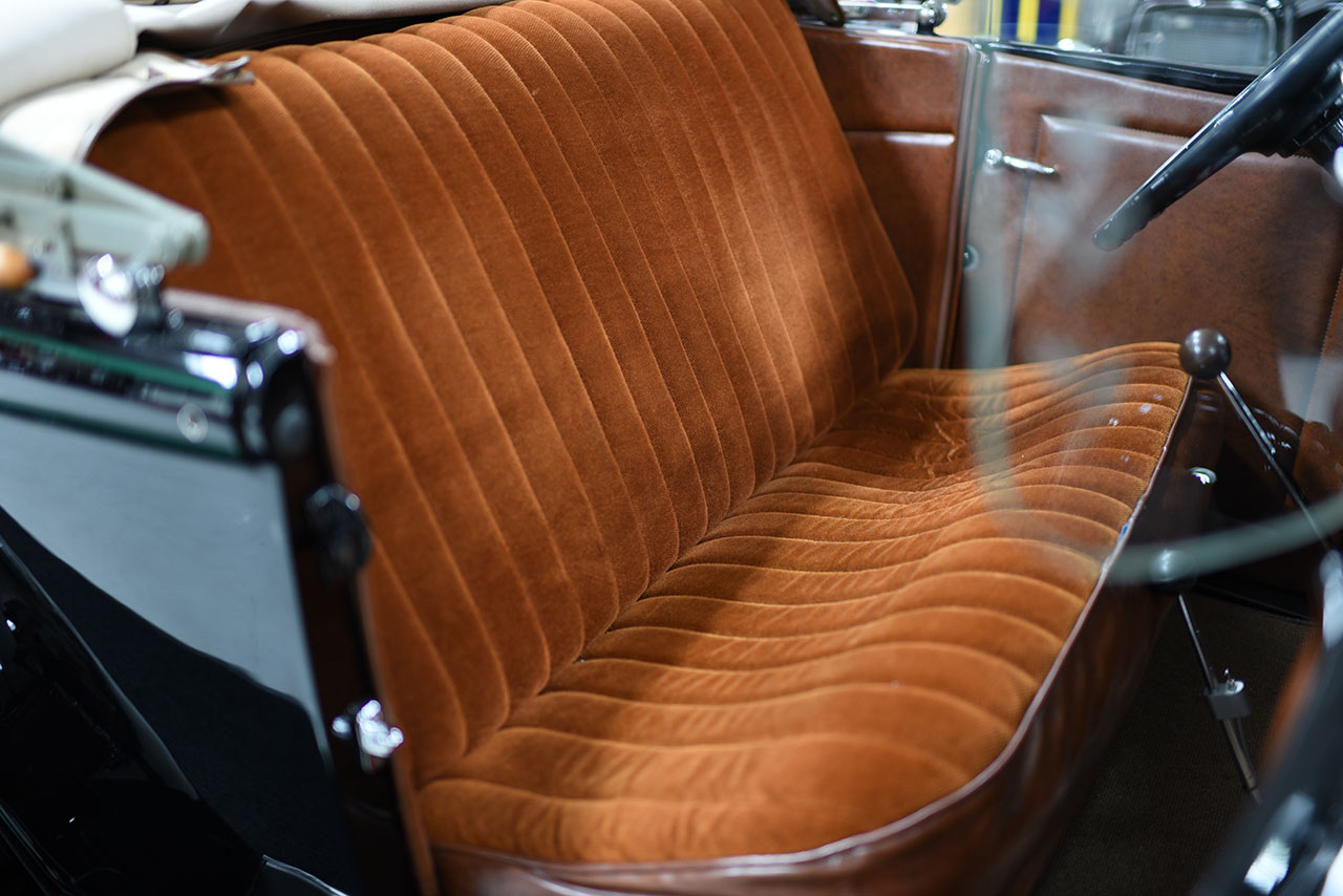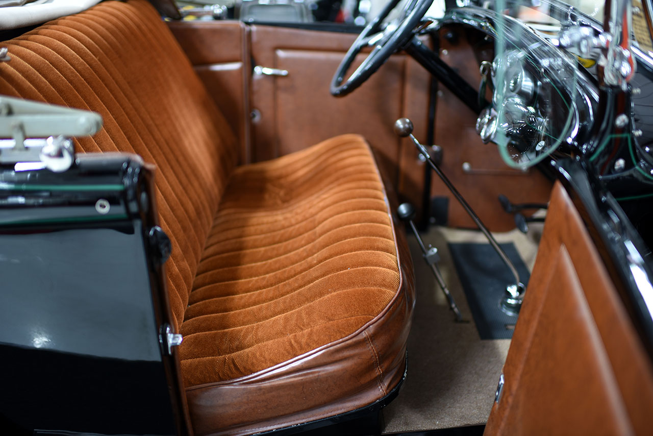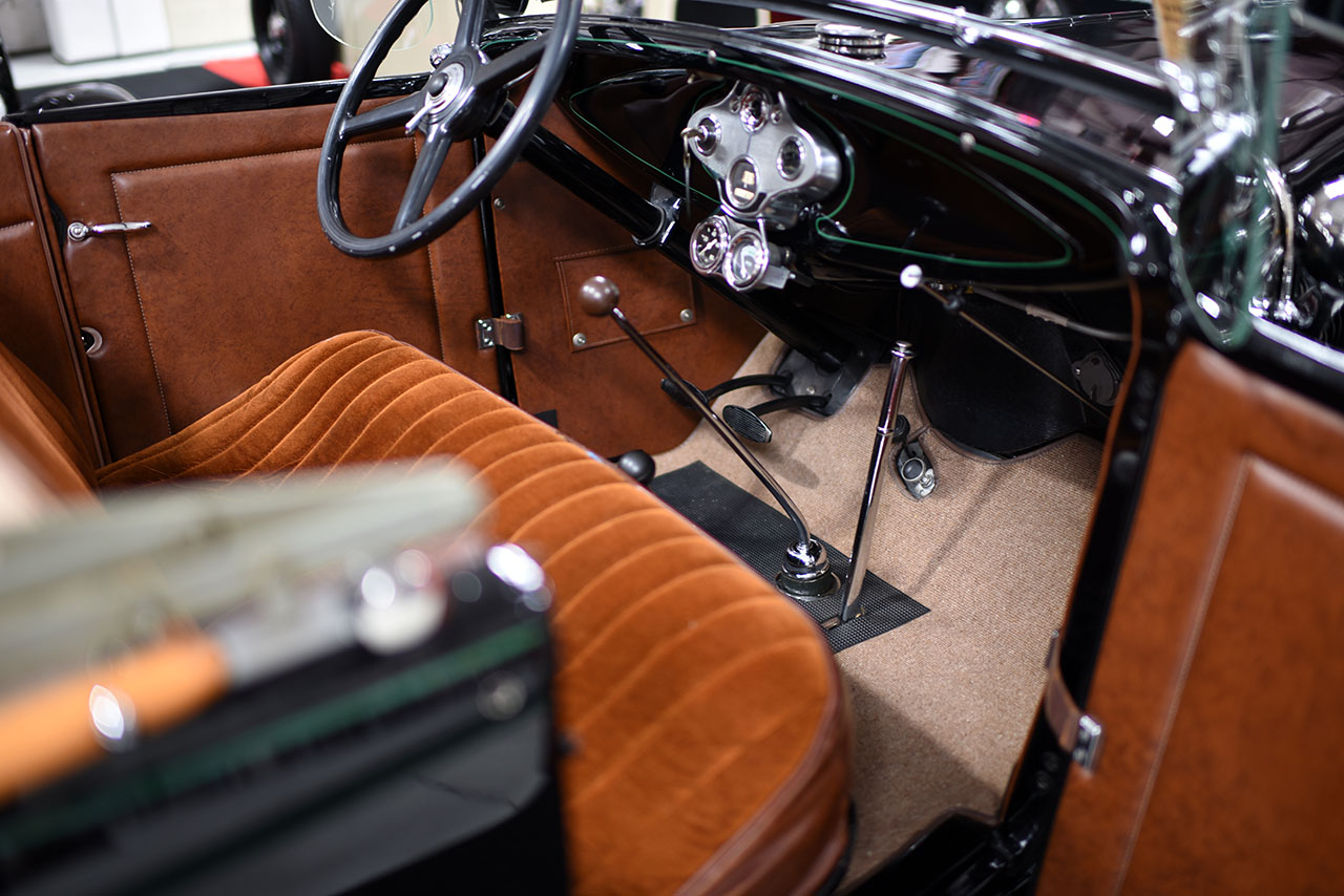 Step inside, and the beautiful details continue with cream-colored upholstery enveloping the cabin, including a comfortable bench seat that offers a timeless look. The dash and center cover have been painted for a refined finish. This ’32 Ford also comes equipped with a stereo system featuring FM radio, Bluetooth connectivity, and Sony speakers.