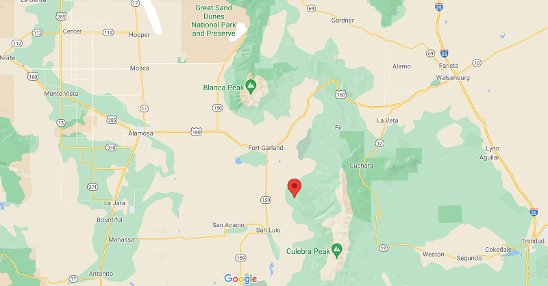 Fort Garland is a “census-designated place” located on US 160 in the San Luis Valley of southern Colorado, 13.1 miles south west of the property. The town consists of maybe 400 people settled at a crossroad. It is a town with a few gas stations, a couple of restaurants and convenience stores, museum and visitor center and several other businesses along the highway. The town of Blanca is 17.1 miles further west. The two towns share their community center and their schools. The two towns are nearly surrounded by Forbes developments (Forbes Trinchera, Forbes Wagon Wheel, Sangre de Cristo Ranches, etc.)