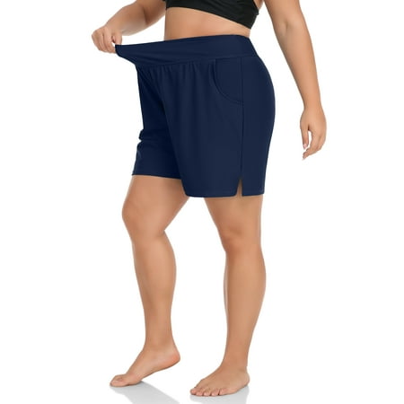 Charmo Plus Size Swim Shorts for Women High Waisted Board Shorts Tankini Swimsuit Bottom with Pockets