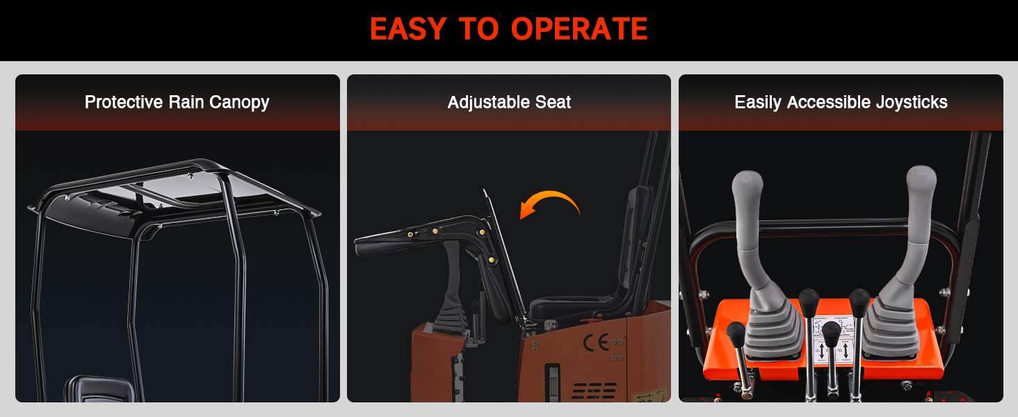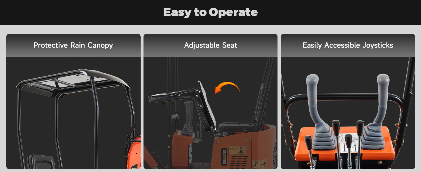 Easy to Operate: This digger features user-friendly joysticks for operators of all skill levels, while its open design gives you a 360-degree view from the seat, ensuring precision in digging, trenching, material handling, and other landscaping tasks.