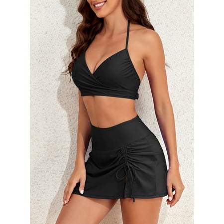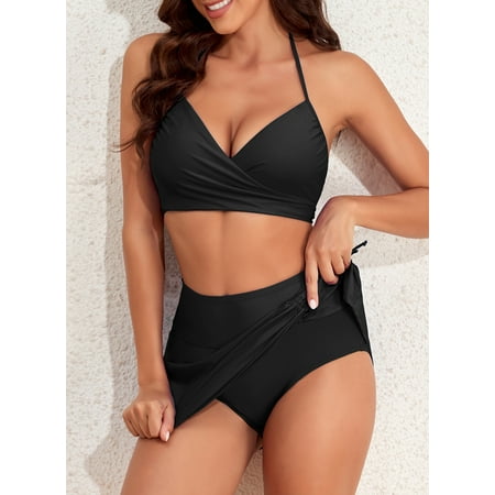 【 V-NECK BIKINI 】This 2-piece tankini swimsuit features a deep v-neck front, adds a touch of sexy and glamour, and show your curve perfectly. The wide adjustable shoulder straps give you complete control over the fit, while the push-up feature enhances your natural curves. 【HIGH WAISTED SWIM SKIRT】 High-waisted tankini bathing suits have a tummy control swim dress feature that provides good support and comfort. The skirt bottom also offer a ruffled design, providing additional good coverage while maintaining a sexy look. 【VARIOUS COLORS CHOICE】All the accents that will make you stand out from the crowd. Whether you prefer a modest or sexy beachwear style, our bikini set offers something for every taste. 【OCCASION】Our two-piece swim dress is designed with high-quality materials to ensure comfort and durability. The best holiday gift for a mom, wife, girlfriend, or woman you love. Perfect for swimming, camping, family pool parties, beach, tropical vacations, water aerobics, and other occasions. Item Type: Bikinis for women, bikini swimsuits for women, women’s bikini, bikini sets for women, black bikini, high waisted bikini, women’s bikini swimsuits
