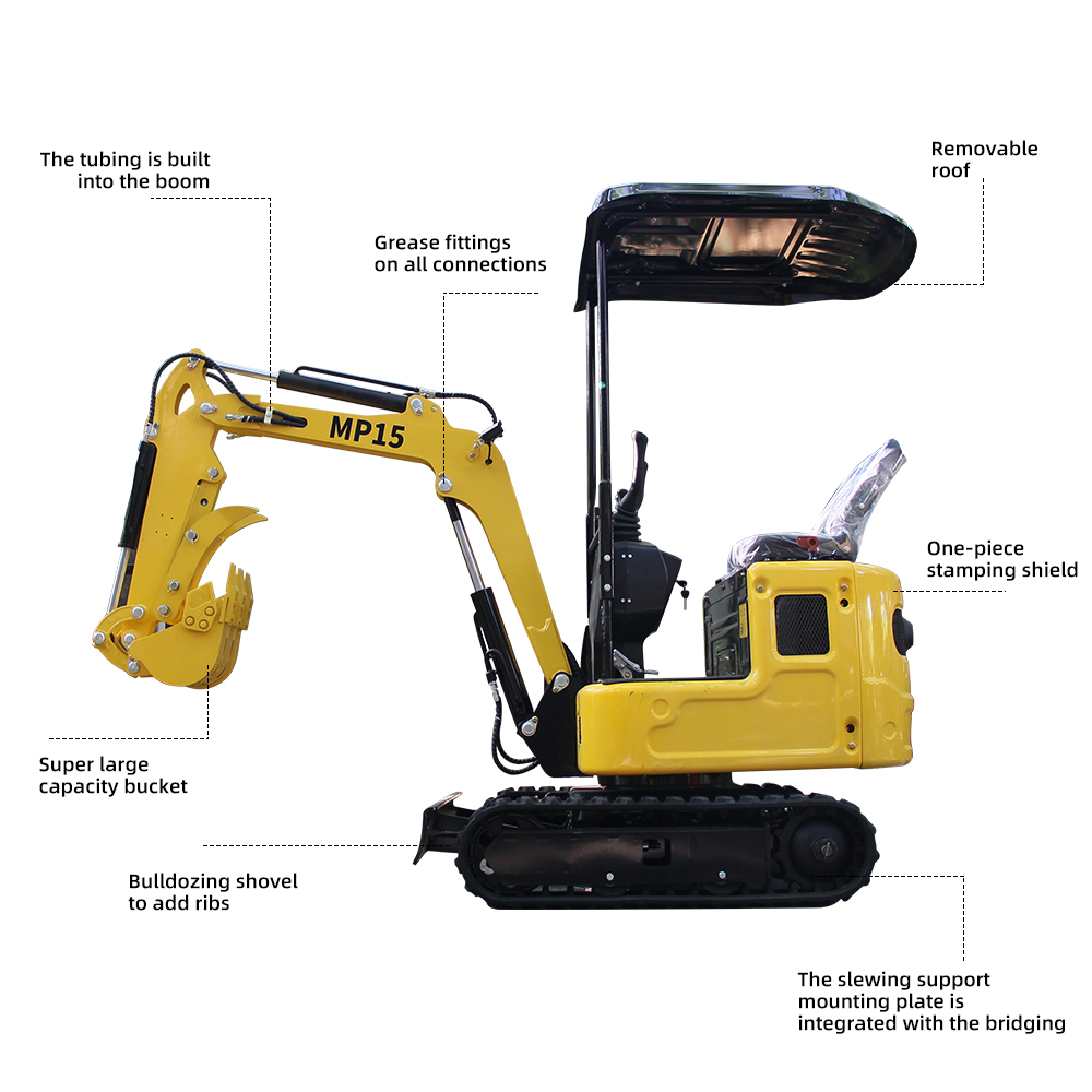 User friendly design: The micro excavator is very easy to operate even when used for the first time, and can easily operate all excavation, drilling, or bulldozer operations.