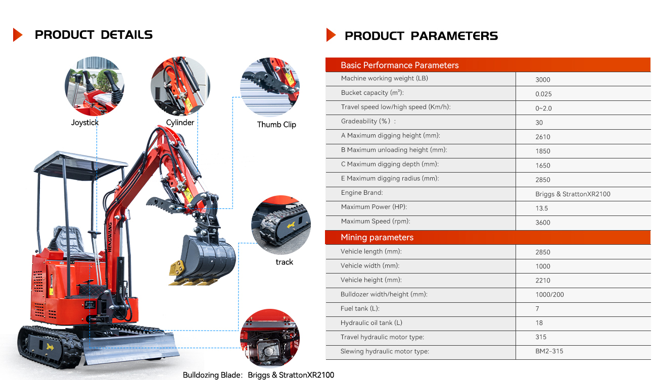 Excellent Maneuverability: The meticulously designed HW-17 mini excavator easily navigates confined spaces, allowing you to effortlessly navigate complex construction site environments. Suitable applications: small construction sites, urban renewal projects, narrow space excavation, landscaping, and agricultural work.